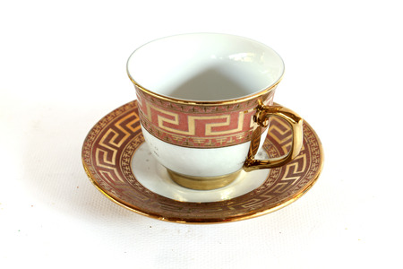 白地に金の縁取りで孤立したアンティーク磁器白いティーカップ ヴィンテージの食器 3 D イラスト の写真素材 画像素材 Image